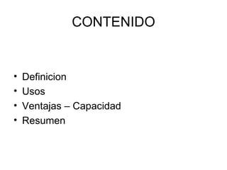 El documento describe un disco duro virtual, que es una herramienta de almacenamiento en línea gratuita que permite almacenar hasta 5 GB de fotos, videos y documentos personales de manera segura. Un disco duro virtual puede crearse a partir de la memoria RAM de un computador o emular un CD/DVD para instalar programas sin necesidad de grabarlos físicamente.