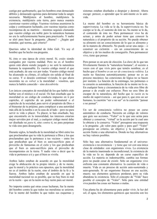 1) John Galt se presenta como el hombre que ha retirado a los hombres de mente de la sociedad y ha puesto fin a la batalla moral de los demás. 2) Explica que ha retirado a aquellos cuya mente no es impotente y para quienes no hay valores mayores que la mente. 3) Declara estar en huelga contra la doctrina de que la vida es culpa y buscar la propia felicidad es malo.