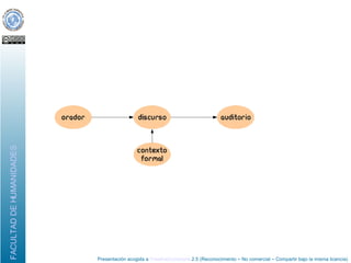 ![Presentación elaborada para la asignatura Retórica Latina, optativa de primer ciclo en la Licenciatura de Filología Hispánica (Universidad de Almería, España). Está acogida a una licencia CreativeCommons 2.5 (BY-NC-SA), lo que significa que puede usarla libremente a condición de que mantenga la autoría original (BY - Reconocimiento), no haga uso lucrativo de ella (NC - No Comercial) y la comparta bajo las condiciones de esta misma licencia (SA - Compartir igual). Si va a comentarla, ampliarla, modificarla, usarla o redistribuirla, le agradeceré que me envíe un correo electrónico a [email_address]](https://image.slidesharecdn.com/discurso-1225263988914692-9/85/Discurso-14-320.jpg)