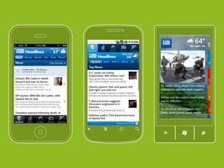 El documento trata sobre el diseño de aplicaciones y sitios web para dispositivos móviles, destacando la importancia de optimizar la experiencia del usuario en pantallas pequeñas y con diferentes sistemas operativos. Se mencionan estadísticas de penetración de smartphones y se discuten decisiones clave en el diseño, como la elección entre aplicaciones nativas y web. También se abordan consideraciones sobre la resolución de pantalla y el diseño responsivo.