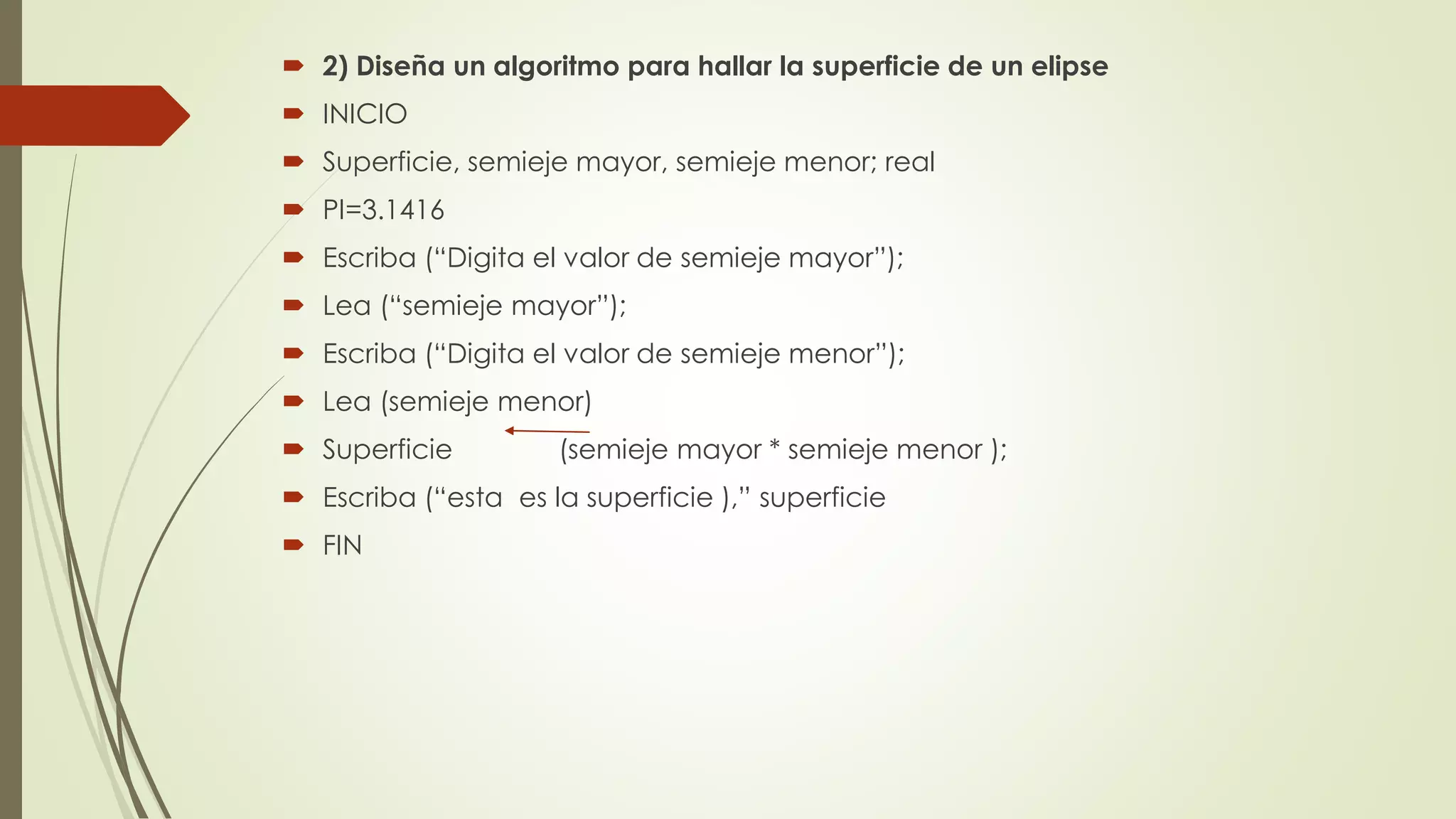 Este documento contiene tres algoritmos. El primero calcula el área de un elipse mediante la fórmula de área (semieje mayor * semieje menor * π). El segundo clasifica jugadores de fútbol en categorías A (menores de 13 años) y B (mayores de 13 años) según su edad. El tercero evalúa cinco pensamientos matemáticos y aprueba al estudiante si obtiene una nota mayor o igual a 3.0 en todos ellos.