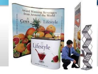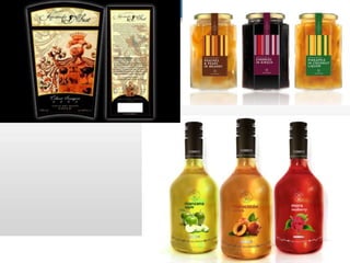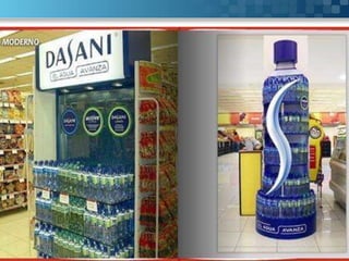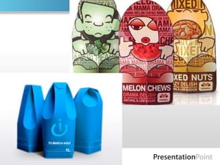 El documento habla sobre el diseño de productos, envases y empaques. Explica que un producto es cualquier cosa que se puede ofrecer en el mercado para satisfacer una necesidad y forma parte de la mezcla de marketing. Además, clasifica los diferentes tipos de productos y describe los elementos a considerar en el diseño de empaques, envases y etiquetas, incluyendo materiales, forma, colores y funciones. También menciona los componentes básicos de un stand de exhibición y el proceso para su diseño.