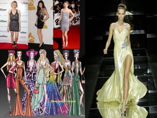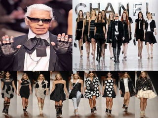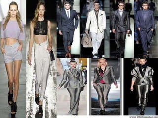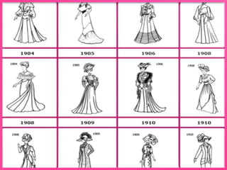 El documento presenta una revisión histórica de la moda y el diseño de modas a través de los tiempos, desde la antigua Egipto y Grecia hasta la actualidad. Describe las tendencias de vestimenta, siluetas y estilos populares en diferentes épocas, así como la influencia de diseñadores clave en el desarrollo de la moda moderna.