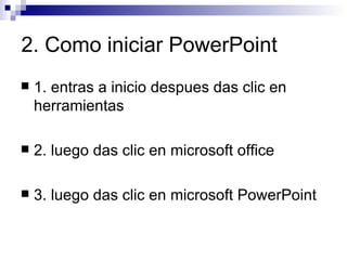 Este documento proporciona instrucciones sobre cómo utilizar diferentes funciones de PowerPoint, incluyendo cómo iniciar PowerPoint, definir un estilo, insertar y cambiar el orden de diapositivas, abrir y guardar presentaciones, e insertar imágenes, efectos de transición y contraseñas de seguridad.