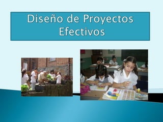 El documento describe las características de los proyectos efectivos centrados en los estudiantes. Los proyectos se basan en un modelo centrado en el estudiante, involucran múltiples tipos de evaluación, y conectan los aprendizajes con el mundo real. El aprendizaje basado en proyectos cambia los roles del docente y el estudiante, así como las perspectivas sobre los programas de estudio y la evaluación.