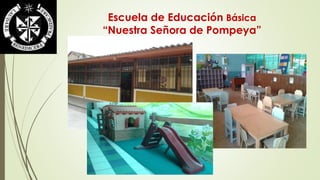 Este documento describe el diseño de un centro de cómputo para la Escuela de Educación Básica "Nuestra Señora de Pompeya" en Saquisilí, Ecuador. Se presentan los detalles de la ubicación de la escuela y la necesidad de implementar un centro de cómputo. El diseño incluye especificaciones sobre el hardware, software, infraestructura eléctrica, seguridad, y planos para la distribución de los equipos. El objetivo es mejorar el proceso de enseñanza-aprendizaje mediante el uso de herram