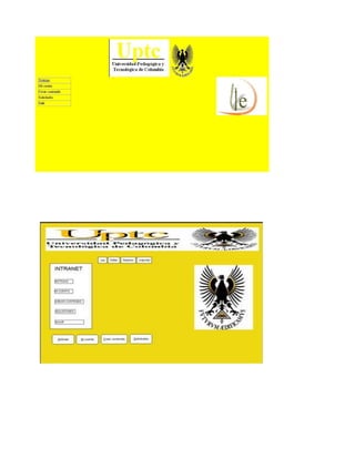 Este documento presenta el diseño de una intranet para el colegio Nicolás Cuervo y Rojas. Tres estudiantes de la Licenciatura en Informática Educativa de la Universidad Pedagógica y Tecnológica de Colombia presentan este proyecto ante su profesor Frey Alonso Santamaría Buitrago. El objetivo es mejorar la comunicación interna en el colegio mediante el uso de las tecnologías de la información. El documento explica los antecedentes, la definición del problema, la justificación, los objetivos y el procedimiento para