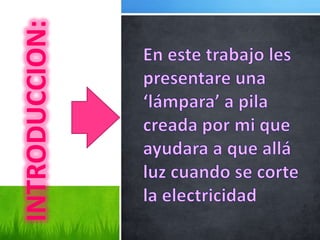 Vicenta González J. realizó un proyecto escolar de lámpara en 3D con materiales como madera, cables y un portalámparas. El procedimiento incluyó hacer una base de madera, insertar cables y fijar componentes. La conclusión del proyecto es 'the end'.