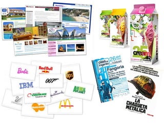 El documento describe el proceso de diseño gráfico, destacando su importancia en la creación de productos visuales que transmiten mensajes a través de diferentes herramientas gráficas. El diseño se aplica en múltiples ámbitos, especialmente en la publicidad y en internet, donde se busca comunicar una imagen en un contexto específico. Se detallan elementos clave como formas, color, tipografía y estructuras espaciales que son fundamentales para el diseño publicitario.