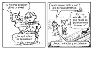 Este documento habla sobre la creación del mundo y del hombre según la Biblia. Describe cómo Dios creó los cielos, la tierra, plantas, animales, y finalmente al hombre a su imagen. También menciona que Dios es el único fundamento verdadero y que Jesucristo es la cabeza de la iglesia. Resalta la necesidad de creer en Dios y confiar en él.
