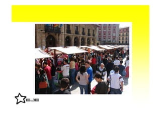 El documento proporciona información sobre la organización y operación de un puesto de venta en un mercado local. Explica los pasos previos requeridos como solicitar permisos y promocionar el puesto. Detalla aspectos del puesto como presentar información sobre la cooperativa, productos y proveedores, así como decorar y equipar el puesto de manera atractiva para los clientes.