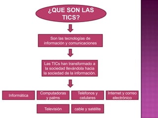 Este documento describe las tecnologías de la información y la comunicación (TIC) y su importancia para el diseño gráfico. Explica que las TIC incluyen computadoras, internet, telefonía y televisión. También describe cómo las TIC se aplican en el diseño multimedia, permitiendo la integración de texto, gráficos, audio y video. Además, discute cómo las TIC facilitan la producción, edición y distribución de contenido multimedia e impulsan la interconexión global.