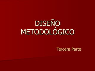 Este documento describe el diseño metodológico de una investigación. Explica que la investigación será cualitativa y exploratoria, y que los datos se obtendrán de una muestra de 20 estudiantes seleccionados al azar de una escuela. Se utilizarán encuestas estructuradas para recopilar información, la cual se analizará usando categorías de análisis para responder a los objetivos. Los resultados se presentarán en tablas y gráficos para mostrar de manera concisa y clara los hallazgos principales de la investigación.
