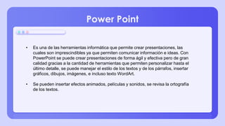 Este documento describe diferentes herramientas para crear presentaciones y sitios web, incluyendo PowerPoint, SlideShare, Scribd, Calaméo y sitios web. PowerPoint permite crear presentaciones con diversas funciones como efectos animados e imágenes. SlideShare y Scribd permiten compartir presentaciones y otros archivos en línea. Calaméo permite crear publicaciones digitales interactivas. Al diseñar sitios web, es importante definir el propósito, elegir una plataforma y configurar páginas como la página de inicio y contacto