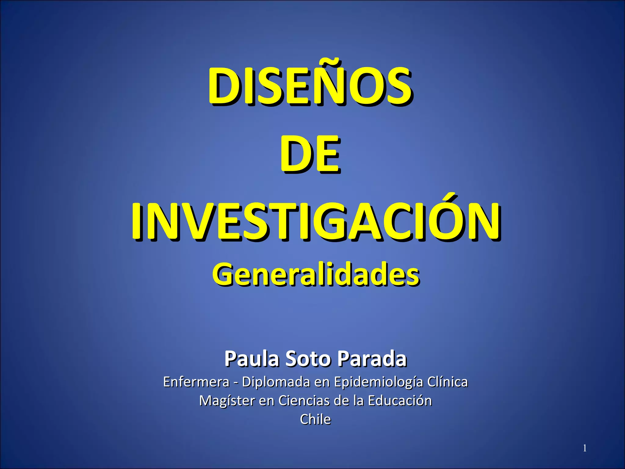 El documento describe diferentes diseños de investigación, incluyendo estudios observacionales como reportes de casos, series de casos, estudios transversales, de casos y controles y de cohortes. También describe estudios experimentales como ensayos clínicos aleatorizados y ciegos que comparan una intervención contra un grupo control. El objetivo general de los diseños de investigación es responder preguntas de investigación de la manera más efectiva posible.