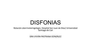 Este documento describe las diferentes causas y tipos de disfonía. Resume las capas histológicas de las cuerdas vocales y clasifica las disfonías en agudas y crónicas, funcionales, orgánicas de base funcional y orgánicas. Explica las causas más comunes de disfonía como laringitis, nódulos, pólipos y tumores laríngeos. El documento también cubre temas como los signos de alarma en pacientes con disfonía y las recomendaciones para estos pacientes.