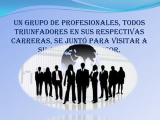 El profesor invitó a un grupo de exitosos profesionales a tomar café y les ofreció tazas de diferentes estilos y precios. Cuando terminaron de servirse, el profesor señaló que las tazas más bonitas se acabaron primeras a pesar de que no afectaban el sabor del café. Él explicó que al igual que las tazas, los trabajos y posesiones materiales no definen la calidad de vida ni traen felicidad, sino que lo que importa es vivir con paz, amabilidad y necesitar poco.