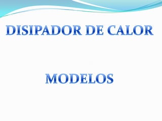 Este documento describe diferentes tipos de disipadores de calor para CPUs, incluyendo sus materiales, instalación y características. Los disipadores de calor se usan para mantener refrigerados los CPUs y permitir un máximo rendimiento. Pueden ser de aluminio, cobre u otros metales y variar en tamaño y diseño dependiendo de la cantidad de calor que deban disipar. Se instalan presionándolos contra el CPU para lograr un buen contacto térmico.