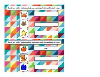 El documento describe cómo desarrollar la conciencia fonológica en niños con dislexia a través de actividades que trabajan las habilidades de identificación y manipulación de sílabas y sonidos. Explica que la conciencia fonológica debe enseñarse explícitamente y que incluye la identificación de rimas, sílabas y sonidos individuales. También detalla diferentes tipos de actividades para niños prelectores y lectores emergentes centradas en comparar palabras, rimas, segmentar sílabas y asociar sonidos a letras