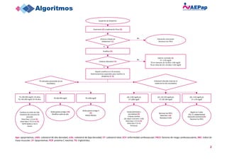 El documento aborda la dislipemia en pediatría, incluyendo su diagnóstico, cribado y tratamiento. Se enfatiza la importancia de la anamnesis, exploración física y análisis de sangre para identificar factores de riesgo y determinar estrategias de intervención como cambios en la dieta y ejercicio. Finalmente, se detalla el enfoque terapéutico, estableciendo que el estilo de vida saludable es fundamental, y se consideran fármacos solo en casos severos o resistentes al tratamiento inicial.