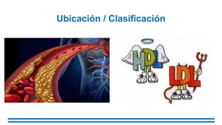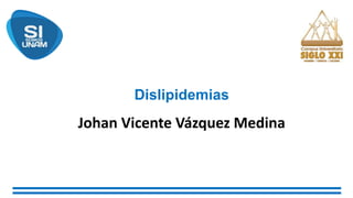 El documento aborda la clasificación y características de las dislipidemias, incluyendo hipercolesterolemia e hipertrigliceridemia, y detalla diversos tratamientos como estatinas, inhibidores de absorción de colesterol y fibratos, junto con sus efectos y dosis recomendadas. Se explica el mecanismo de acción de cada tratamiento y sus posibles efectos adversos. Además, se menciona la importancia de la emulsificación y la lipogénesis en el metabolismo de lípidos.