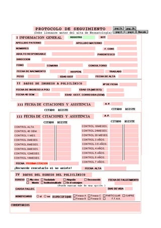 Este documento presenta una guía clínica sobre la displasia broncopulmonar del prematuro en Chile. Brinda definiciones, magnitud del problema, recomendaciones basadas en evidencia y objetivos. Explica que la displasia broncopulmonar es un daño pulmonar crónico en prematuros relacionado al manejo ventilatorio y las infecciones. Afecta a un 20-35% de prematuros menores de 1500g, con mayor riesgo en los menores. Tiene efectos en la calidad y expectativa de vida de los niños.