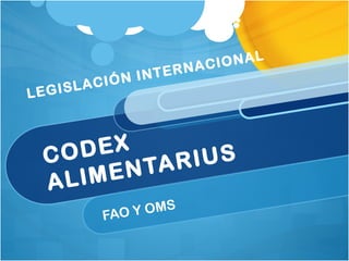 El documento describe las disposiciones legales sobre alimentos a nivel internacional, nacional e internacional. Explica que la FAO y la OMS establecieron el Codex Alimentarius en 1963 para establecer normas alimentarias internacionales armonizadas que protegen la salud de los consumidores y promueven prácticas comerciales justas. A nivel nacional, la COFEPRIS es el organismo encargado de regular, controlar y promover la salud en México en relación con los alimentos y productos.