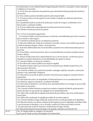 Este documento contiene extractos de la Constitución Política de Chile y del Código Penal chileno. En la Constitución se establecen derechos fundamentales como el derecho a la vida y la prohibición de la pena de muerte, así como garantías para procesos judiciales justos. El Código Penal define los delitos y establece las circunstancias atenuantes y agravantes que modifican las penas. También clasifica los delitos en crímenes, simples delitos y faltas, y establece las diferentes escalas de