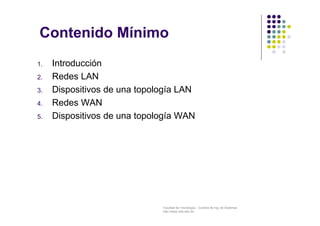 El documento aborda la categorización y funcionamiento de redes de computadoras, centrando su atención en las redes de área local (LAN) y de área amplia (WAN). Detalla la infraestructura de red, que incluye tanto componentes físicos como lógicos, y describe varios dispositivos interconectados, como repetidores, hubs y tarjetas de interfaz de red. Se enfatiza la importancia de elegir el medio de transmisión adecuado, así como las características y tipos de LAN, incluyendo la tecnología de conmutación para optimizar el rendimiento.