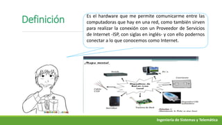El documento describe diferentes dispositivos de red y su función en la transmisión de datos, incluyendo hubs, puentes, switches, routers, módems y firewalls. Resalta la importancia de estos dispositivos en la interconexión de redes y en la calidad y seguridad de la comunicación. Se concluye que conocer estos dispositivos es esencial para solucionar problemas en redes de computadoras.