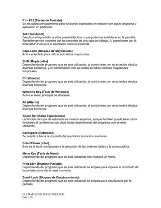 Este documento describe los diferentes tipos de computadores, incluyendo ordenadores personales, portátiles, servidores y PDA. También explica las unidades de medida para el almacenamiento como bit, byte, kilobyte, megabyte y gigabyte. Finalmente, detalla varios dispositivos de entrada comunes como teclado, mouse, micrófono, escáner y cámara digital.