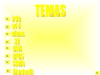 El documento describe la organización Irda, creada en 1993 por empresas como HP e IBM con el fin de establecer estándares para comunicaciones infrarrojas. La tecnología Irda permite conexiones bidireccionales a velocidades entre 9.6 kbps y 4 Mbps con un alcance de 1 metro. Actualmente se está desarrollando una versión más rápida llamada FIR que alcanzaría los 16 Mbps.