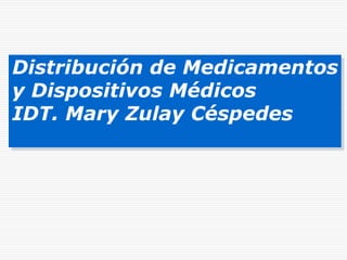 Este documento describe los sistemas de distribución de medicamentos y dispositivos médicos en una institución de salud. Explica que la distribución interna y externa busca entregar los insumos de manera oportuna, eficiente y segura. Describe cuatro sistemas de distribución: por existencias en los servicios, por prescripción individualizada, combinados y por dosis unitaria. El sistema por existencias se basa en reposiciones periódicas de cantidades fijas a cada servicio, mientras que el de prescripción individual distribuye seg
