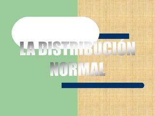 Este documento describe la distribución normal. La distribución normal fue presentada por primera vez por Abraham de Moivre en 1733 y ampliada por Laplace en 1812. Se llama a la distribución normal aquella en la que la función de densidad de probabilidad de una variable aleatoria continua tiene forma de campana y depende de dos parámetros: la media y la desviación típica.
