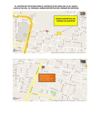 El centro de votación para el distrito 04 se ubica en la avenida Santa Lucia número 1100 en la colonia El Paraíso, en la Unidad Deportiva del Parque de Zapopan. La ubicación exacta es la Unidad Deportiva del Parque de Zapopan en la avenida Santa Lucia número 1100.