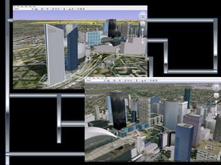 El documento describe La Défense, un distrito de negocios en París. Explica que La Défense se ubica entre los municipios de Puteaux, Courbevoie y Nanterre, y que tiene una gran influencia económica en París y Europa al generar más de 150,000 empleos. También detalla algunos de los impactos de La Défense en el contexto histórico, social, económico y natural de la región. Finalmente, presenta imágenes de algunos de los principales edificios e instalaciones del distrito.