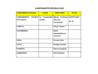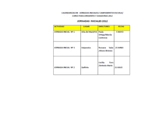 Este documento presenta el programa de actividades para jóvenes y adultos del Distrito Michimalonco para junio y julio de 2012, incluyendo un festival gastronómico, un foro juvenil, y una asamblea distrital. También detalla los cursos de formación programados y la tabla de pagos de inscripciones para el año según categorías. Por último, proporciona información sobre las cuentas bancarias de la zona, nacional y distrital.