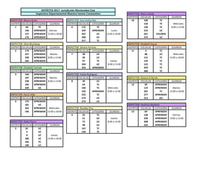 Este documento lista los nombres de varios inspectores de distritos escolares, las categorías de guardia y las escuelas asignadas para cada uno. Proporciona detalles como los días de la semana y horarios de las guardias de cada inspector y escuela. El objetivo parece ser organizar y asignar las guardias escolares de los inspectores a las diferentes escuelas dentro de su jurisdicción.