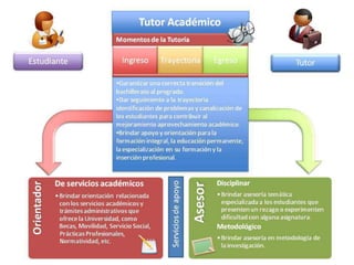 Este documento presenta la información relevante sobre un diplomado en tutoría académica, incluyendo antecedentes, objetivos, ejes conductores, módulos y objetivos de aprendizaje. El diplomado busca capacitar a tutores para apoyar el desarrollo integral de los estudiantes a través de herramientas pedagógicas, el seguimiento del plan de acción tutorial y el apoyo en la trayectoria profesional de los estudiantes.