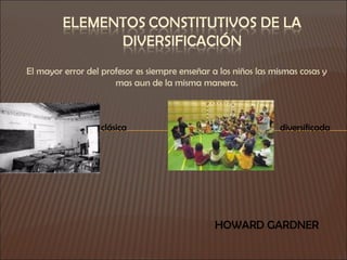 El documento describe los principios de un aula diversificada. Un aula así reconoce que los estudiantes aprenden de maneras diferentes y a diferentes ritmos. El profesor diseña instrucciones para enfocarse en conceptos y habilidades fundamentales, pero también para desafiar a estudiantes más avanzados. La evaluación continua ayuda al profesor a entender las capacidades y necesidades de cada estudiante.
