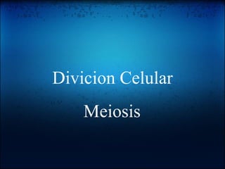 La meiosis permite que una célula diploide se divida en cuatro células hijas haploides con la mitad del número de cromosomas, lo que posibilita la reproducción sexual. Ocurre en cuatro etapas donde los cromosomas se alinean en el centro de la célula y luego migran a los polos opuestos, dividiendo el citoplasma en dos células hijas haploides con cromosomas individuales.