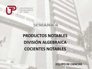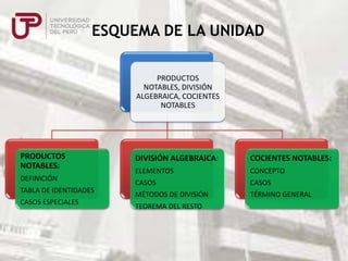 Este documento presenta diferentes métodos para dividir polinomios, incluyendo la división de monomios, polinomios entre monomios, polinomios entre polinomios usando métodos como Horner y Ruffini. También explica cómo encontrar el resto de una división sin efectuarla reemplazando la variable por su valor en el dividendo.