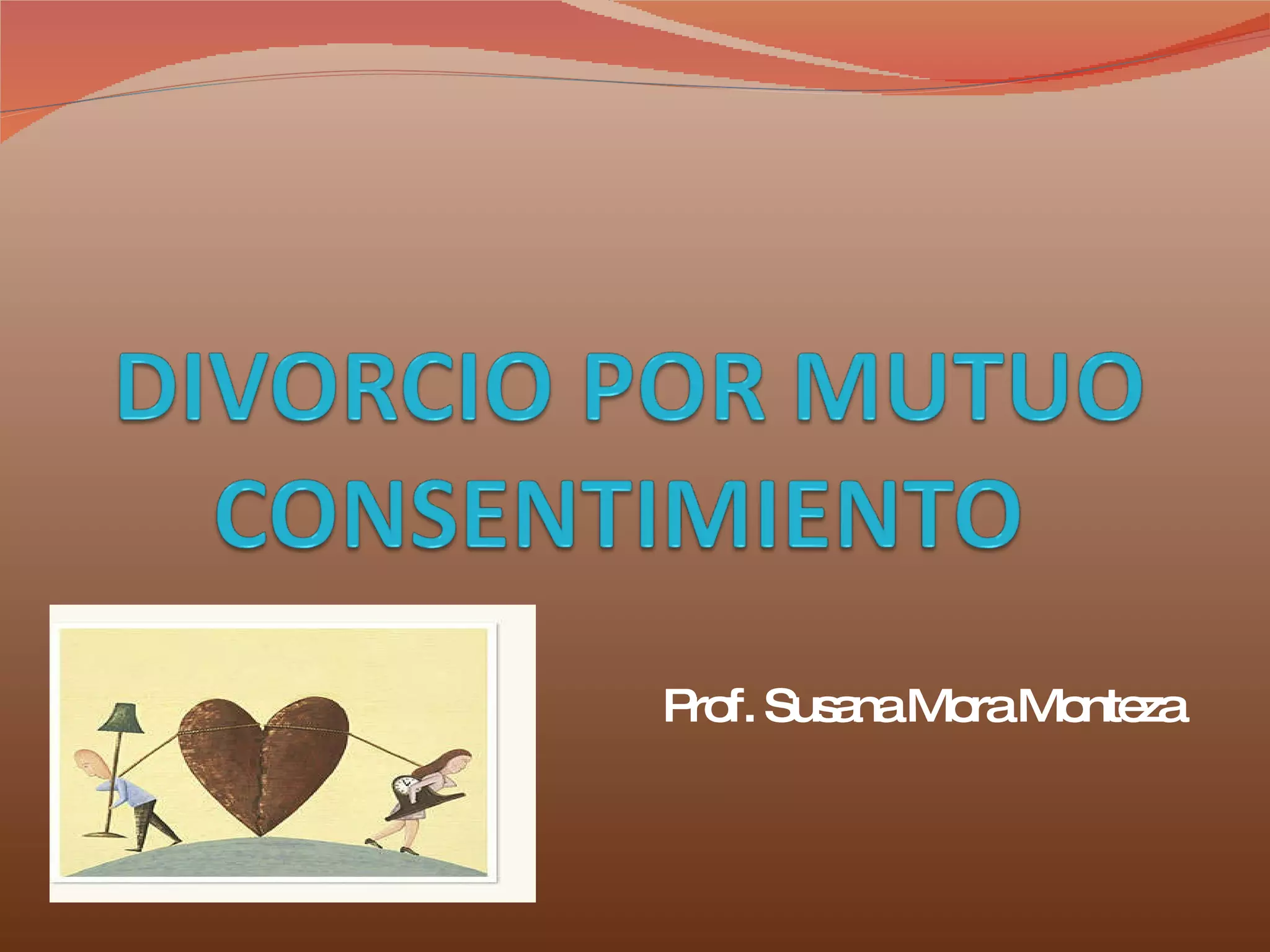 El documento describe los aspectos generales del divorcio por mutuo consentimiento en Ecuador. Este tipo de divorcio se produce cuando ambos cónyuges deciden voluntariamente terminar el vínculo matrimonial. El proceso es más rápido (3 a 4 meses) y menos traumático que otros tipos de divorcio. Se requiere que el matrimonio tenga al menos dos años y que las partes ratifiquen su solicitud de divorcio entre 2 a 6 meses después de presentarla ante el juzgado seccional de familia correspondiente a su distrito.