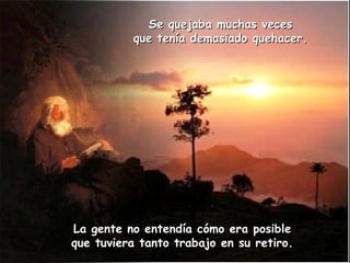 El ermitaño explica mediante una alegoría que la vida solitaria en el desierto no significa falta de trabajo o esfuerzo. Debe "domar" y entrenar seis animales que representan diferentes partes de sí mismo: sus ojos (halcones), manos (águilas), pies (conejos), lengua (serpiente), cuerpo (burro) y corazón (león). Cada día debe guiar y controlar estas partes para evitar que hagan daño y cumplan con su deber.