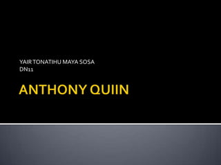 Anthony Quinn fue un actor mexicano-estadounidense galardonado con dos premios Oscar. Nació en México en 1915 de padre irlandés y madre mexicana. Trabajó desde niño para apoyar a su familia antes de dedicarse a la actuación. Alcanzó la fama internacional con películas como La Strada y ganó dos Oscar por sus papeles en Viva Zapata y Loco del pelo rojo. Continuó actuando en diversos géneros durante décadas hasta su muerte en 2001.