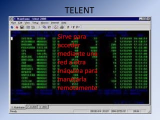 Este documento describe diferentes servicios de internet como Telnet que permite controlar remotamente otra máquina, Gopher que organiza información de forma arborescente a través de menús, VERONICA que es una herramienta para buscar en índices de servidores Gopher, y WAIS que es una prueba para evaluar la inteligencia a través de escalas verbal y de ejecución.