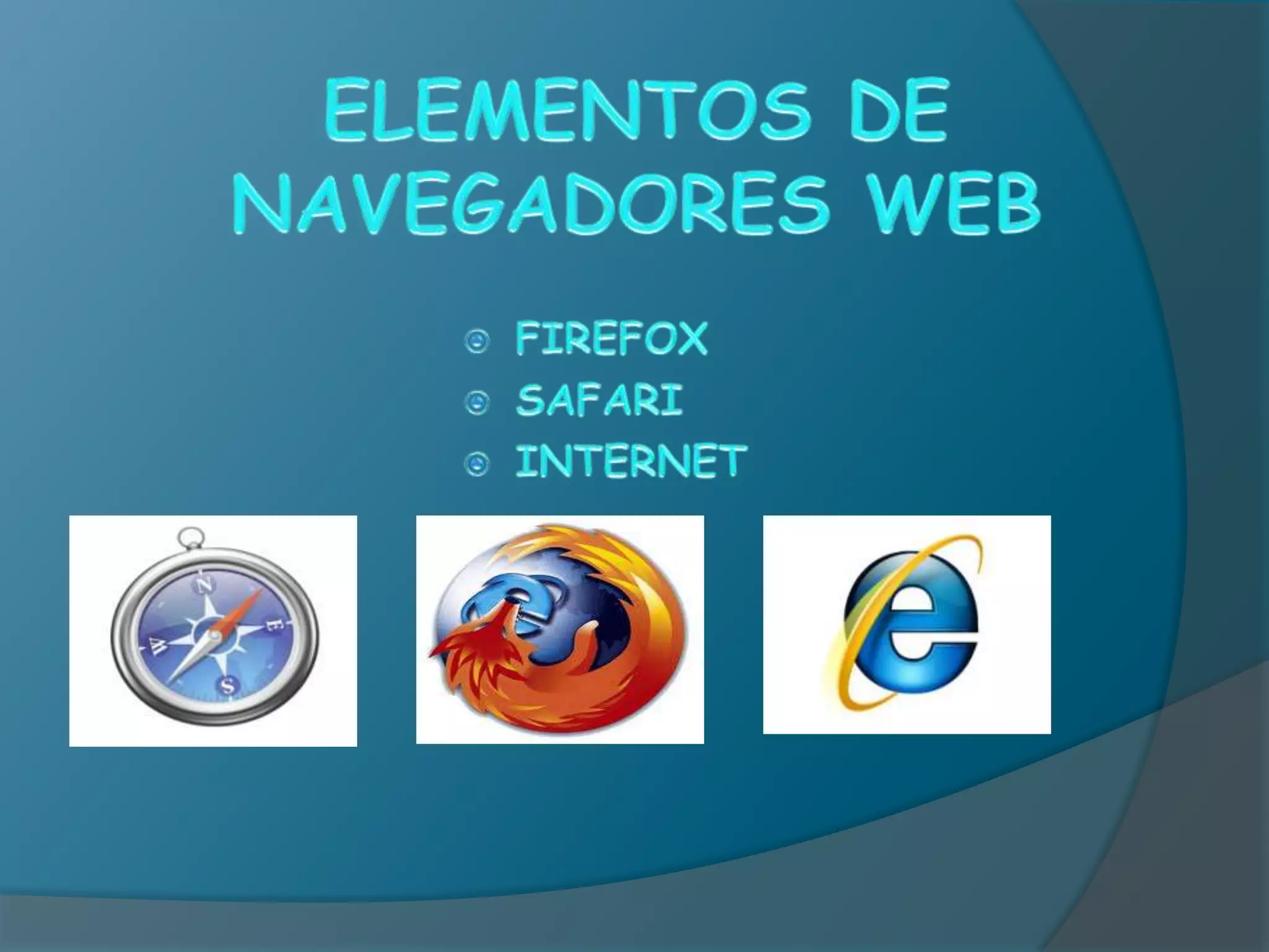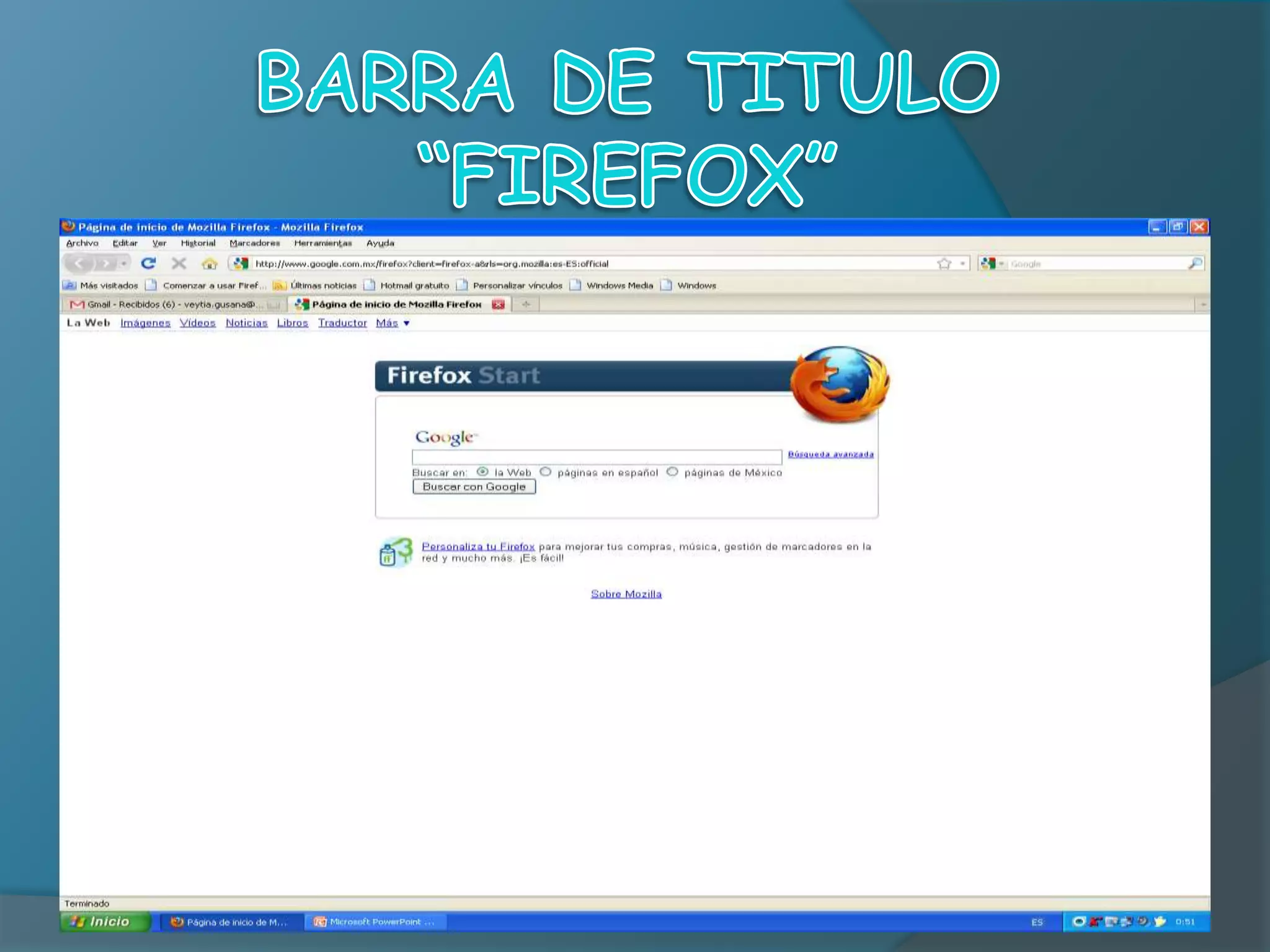 El documento describe las barras de título, herramientas y búsqueda de los navegadores web Firefox, Safari e Internet Explorer. Se incluyen referencias a las páginas web de Firefox, Safari y Google.