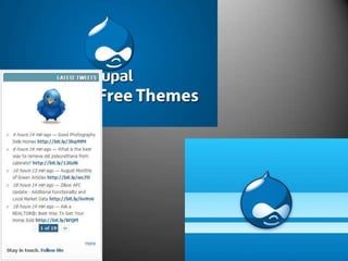 Drupal es un sistema de gestión de contenidos libre y de código abierto escrito en PHP. Está diseñado para construir y gestionar comunidades en Internet y contiene módulos centrales, contribuidos y personalizados. Drupal puede usarse para diversas aplicaciones como portales comunitarios, foros, sitios corporativos y de comercio electrónico.