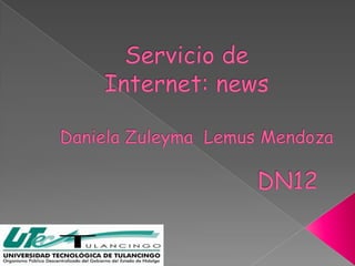 El documento describe el servicio de News, un sistema de discusión distribuido en Internet que consiste en grupos clasificados por tema. Los usuarios envían mensajes a estos grupos, los cuales pueden contener texto o información codificada y son distribuidos a todos los servidores que mantienen copia de esos grupos. El nombre de cada grupo indica su tema a través de palabras separadas por puntos. El acceso al servicio de news sólo es posible desde la universidad o a través de VPN desde fuera.