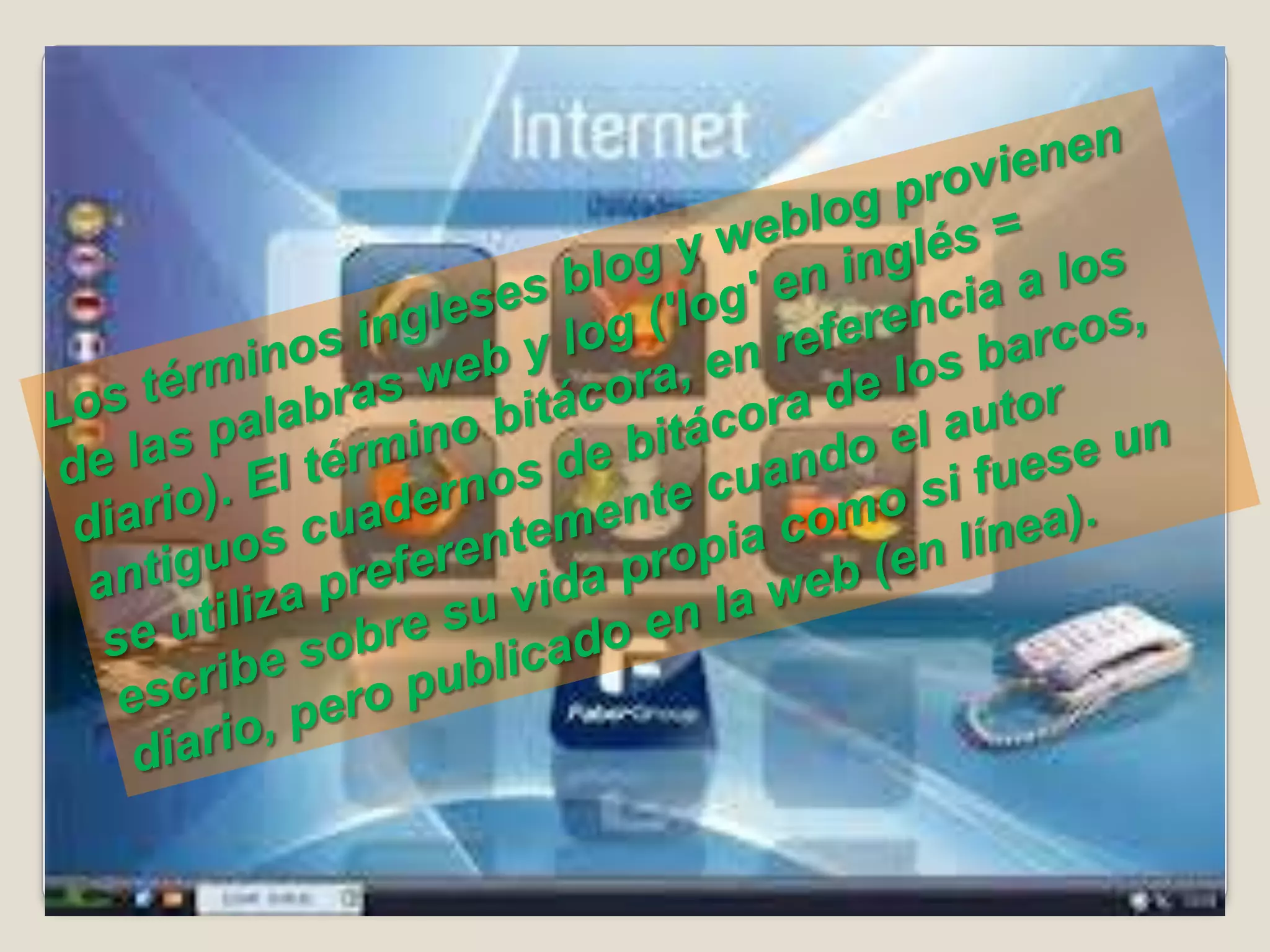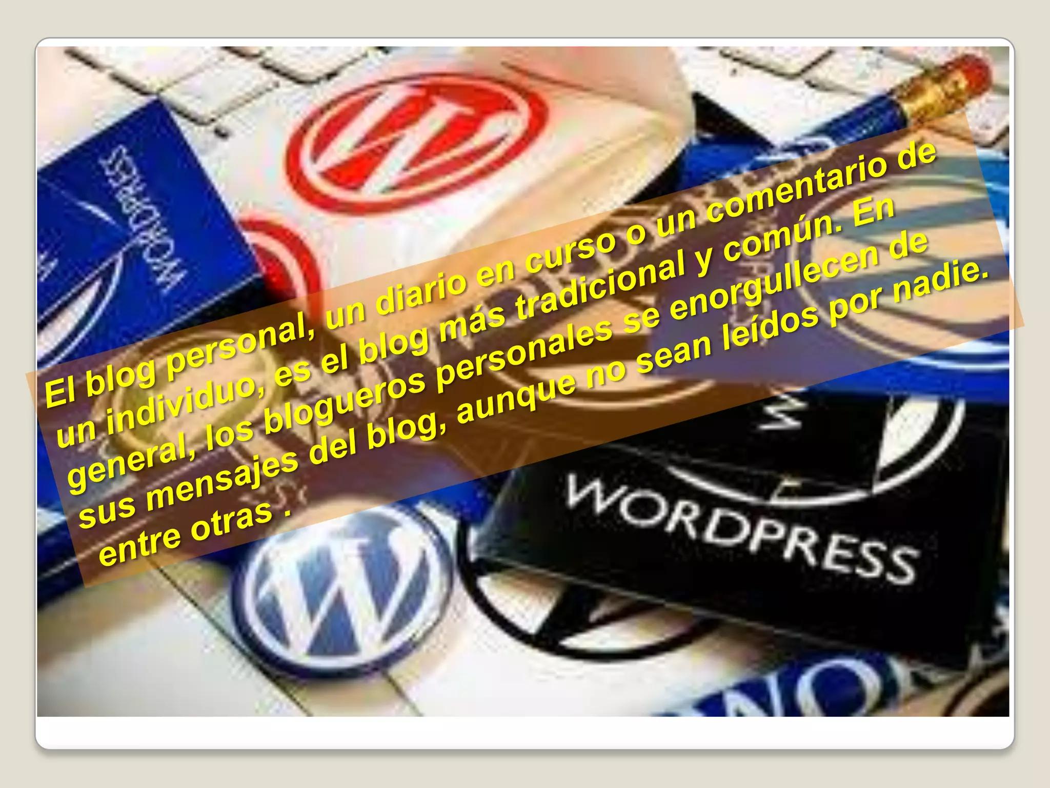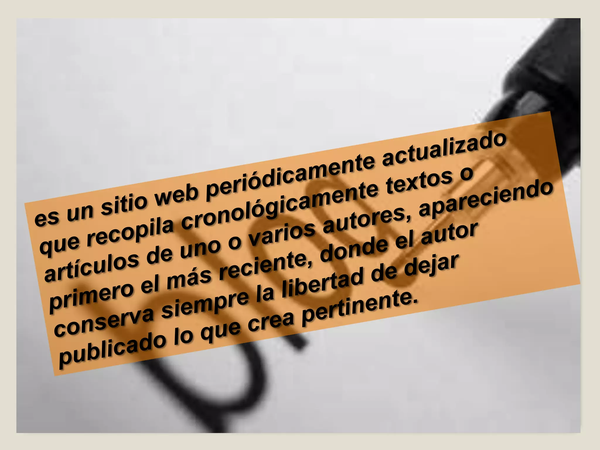 Los blogs son servicios de internet que permiten a los usuarios publicar contenido en la web de manera fácil y gratuita. Los blogs permiten compartir opiniones, noticias e información sobre diversos temas. Son una herramienta útil tanto para usuarios personales como para empresas.